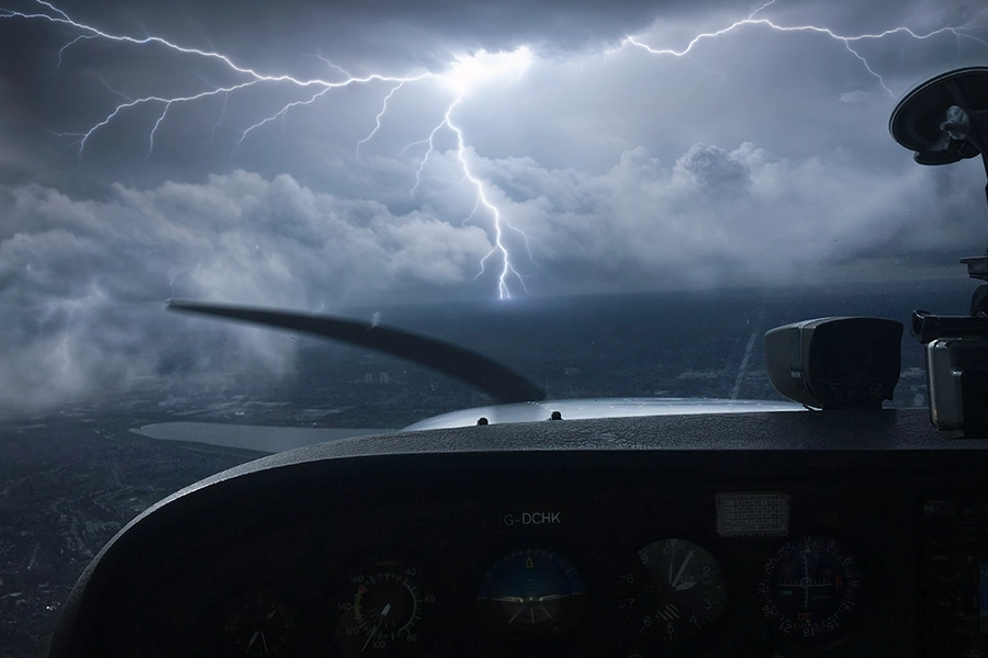 In Electric Skies, Taylan Aston plunges us straight into a proper storm, lightning slicing through dark clouds like nature’s own fireworks display. Seen from the cockpit, with controls in view, it’s as if you’re right there, heart racing, gripping the yoke as the sky throws a tantrum. The flashes against the grey clouds make for a thrilling, almost cinematic scene, capturing both the raw power of the storm and the sheer exhilaration of flying through it — awe-inspiring stuff, if you don’t mind your tea getting cold.