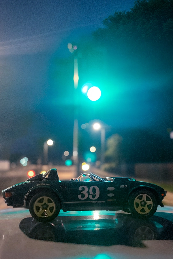 In Midnight Racer, Hamish Scott turns a wee toy car into the star of a nighttime adventure, zooming past green traffic lights on a blurred city street. The number “39” gleams as streetlights cast a soft, cinematic glow, making the scene feel both playful and dreamlike. With the background fading into a gentle blur, it’s a charming nod to childhood imagination, racing thrills, and the simple joy of pretending the night is yours.