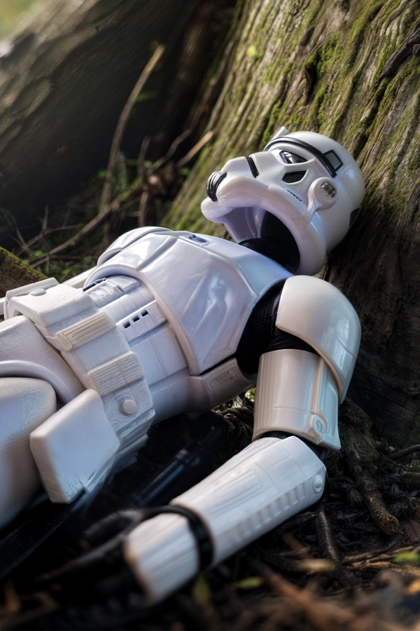 In Fallen Warrior, Aiden Kyle shows a stormtrooper action figure resting against a tree, blending nostalgia with a hint of melancholy. The detailed armour and slumped pose contrast the figure’s heroic design with its vulnerable spot. Soft natural light and textured bark give the scene realism, inviting reflection on loss and the passage of time — or, you know, what happens when a toy finally takes a day off.
