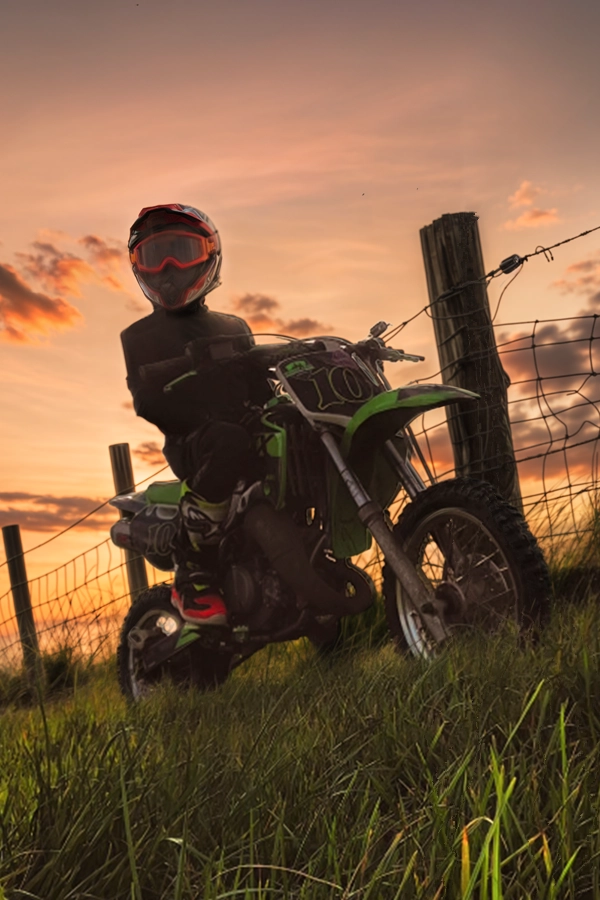 In Rider’s Reverie, Atticus Orr Ewing captures a motocross rider poised against a vivid sunset. Oranges and pinks light the sky, adding drama to the scene, while the rider’s confident stance embodies freedom and adventure. Tall grass in the foreground adds depth, and fence posts hint at the rugged landscape beyond. The shot perfectly balances the thrill of motorsport with the beauty of nature, inviting viewers to imagine the rides that await at dusk.
