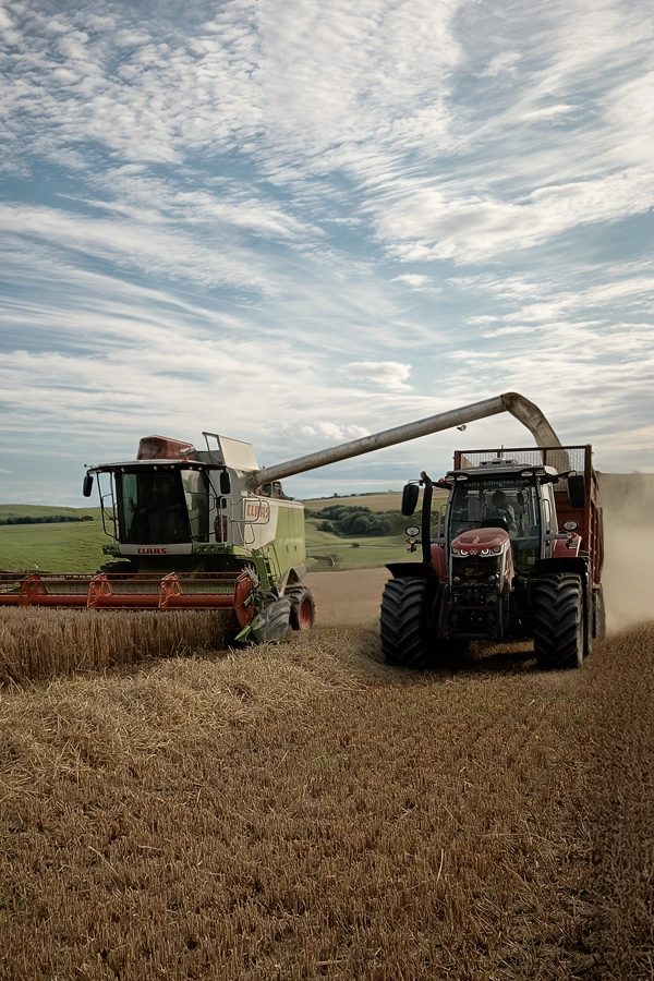 In Farmers at Work, Cameron McClymont captures a combine harvester and tractor working side by side in a golden field. The machinery stands out against the blue sky, while dust clouds hint at the constant motion of harvest life. Warm tones and wispy clouds create a serene yet energetic scene, celebrating both the skill of modern farming and the timeless bond between people and land. A reminder that producing our food is hard work — and no, it doesn’t come from the supermarket shelf by magic.