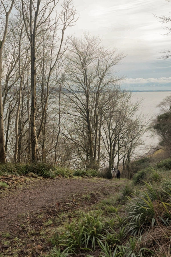In Paws on the Path, Georgia Sutherland captures a peaceful walk along a winding trail, where a dog strolls beside a calm waterway. Bare trees and soft sky light frame the scene, while the curving path invites the viewer to follow. The dog, small against the broad landscape, adds companionship and a sense of adventure. Muted tones and gentle textures evoke a quiet afternoon in nature, celebrating the simple joy of a walk with a loyal friend.