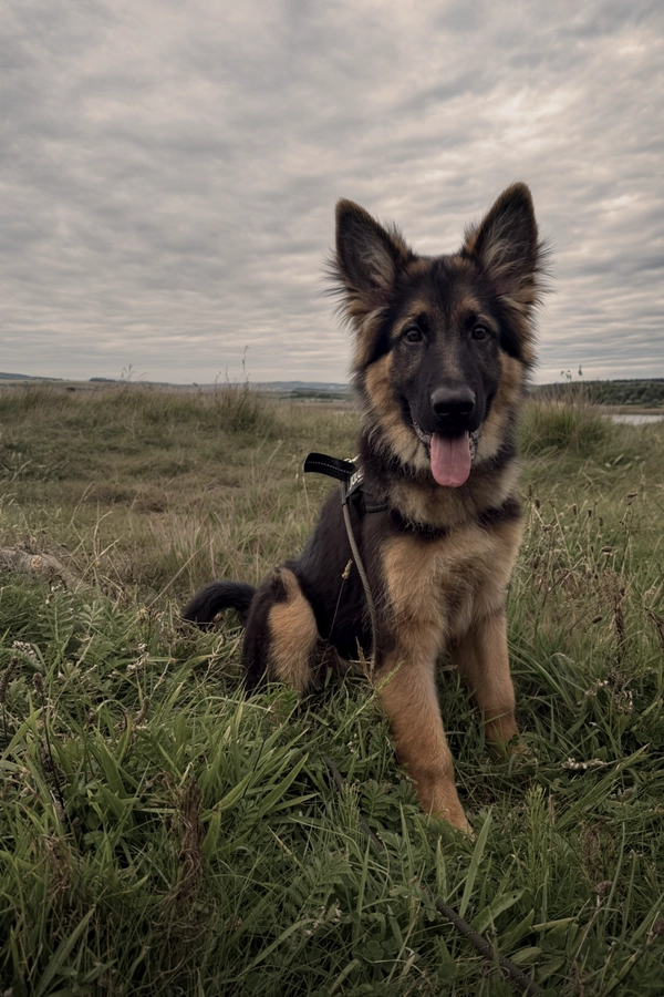In Nature’s Best Friend, Taylan Aston captures a lively German Shepherd puppy amid lush greenery. Its curious eyes and playful pose radiate joy, while tall grass frames the scene and soft clouds provide a gentle backdrop. Vibrant fur pops against muted tones, celebrating both the charm of the puppy and the simple delight of exploring outdoors with a loyal companion. Pure energy and friendship in one picture — no leash required.