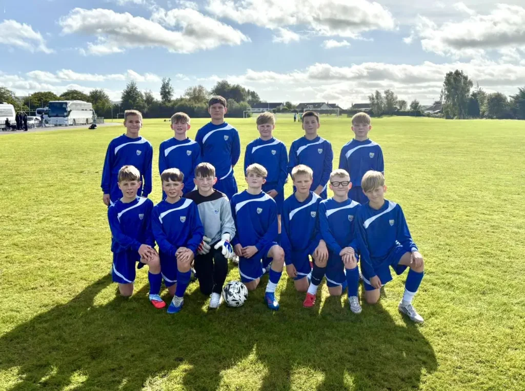 In a commanding 7–1 victory over Wallace Hall Academy, the team delivered a thrilling performance in a 4-3-3 formation, with standout moments from Kobi Wilson, who won a free kick that Harry Greenhorn delivered perfectly for Leighton McKie to volley home, Kobi dribbled past three defenders to score from a tight angle, Kobi assisted Brandon Millar’s header from a corner, and chipped the keeper after a solo run; Brandon added his own brilliance with a dazzling dribble past four players and a curled finish; Harry played a superb through ball to Robbie Marshall, who scored after persistence and a keeper spill, and later swung in a cross that led to an own goal under pressure; Carter Henderson made crucial saves throughout, keeping the team secure, while Aran McMaster produced a heroic goal-line clearance to deny a late chance—altogether, it was a fantastic result and a testament to the whole squad’s unity, effort, and quality across the pitch.